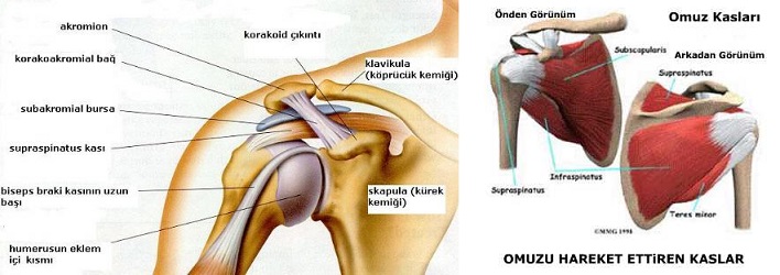 Omuz glenohumeral, akromioklavikular, sternoklavikular, ve skapulotorakal olmak üzere dört ayrı eklemin birlikteliğinden oluşur. Omuzda en fazla hareket glenohumeral eklemde meydana gelir. Omuza glenoidlabrum, eklem kapsülü, ligamentler statik destek sağlerken, rotatör kas grubu ve biceps uzun başıda dinamik destek sağlar.
